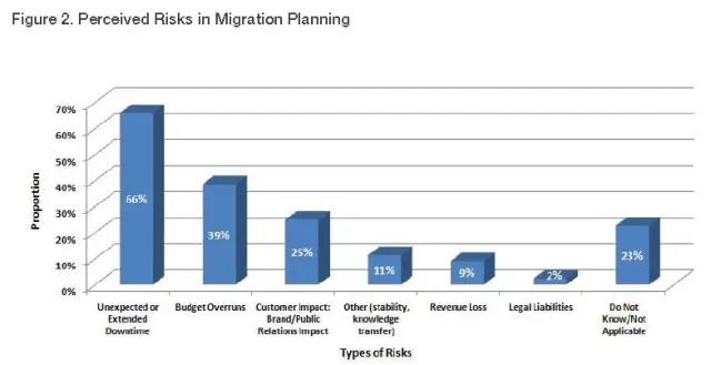 遷移的風(fēng)險(xiǎn),用戶最擔(dān)心的就是非計(jì)劃的停機(jī),第二是遷移的成本超過預(yù)算,第三是對公司品牌和公共形象的影響。