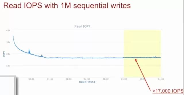 但1M的順序讀性能基本可以穩(wěn)定在17000 IOPS。