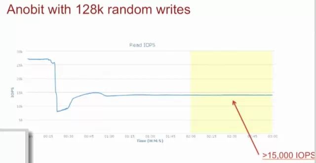 而XtremIO必須采用eMLC SSD,因?yàn)樾枰猄SD自己來(lái)做GC。這個(gè)Anobit的eMLC SSD,在GC的時(shí)候,128K隨機(jī)寫(xiě)的性能是15000IOPS。性能還是不如上面的cMLC 1M順序?qū)憽?/p>