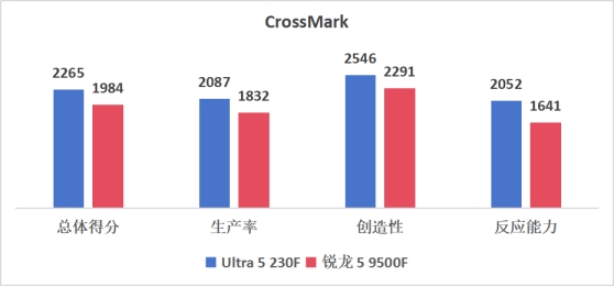 生產(chǎn)力測試比較反應(yīng)處理器在實際生活中在進(jìn)行渲染建模,圖片與視頻制作時的性能。230F擁有更多的核心,成績也更好。V-Ray是3D渲染程序,230F可以領(lǐng)先9500F6%左右。Blender的三項環(huán)境渲染基準(zhǔn)測試中,230F平均領(lǐng)先幅度高達(dá)11%。CrossMark是一項綜合的基準(zhǔn)測試軟件,覆蓋絕大多數(shù)使用場景,230F領(lǐng)先9500F 16%左右。