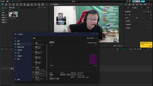 這一代處理器中首次出現(xiàn)了NPU,擁有13TOPS的算力。NPU專注于神經(jīng)網(wǎng)絡(luò)運算,其計算單元、數(shù)據(jù)路徑和存儲結(jié)構(gòu)都進(jìn)行了深度優(yōu)化,能高效的執(zhí)行深度學(xué)習(xí)模型中的關(guān)鍵操作,實現(xiàn)更高的計算效率和能效比。如今也有不少軟件支持NPU,例如剪映的智能摳圖功能,這些都是230F獨有的優(yōu)勢。